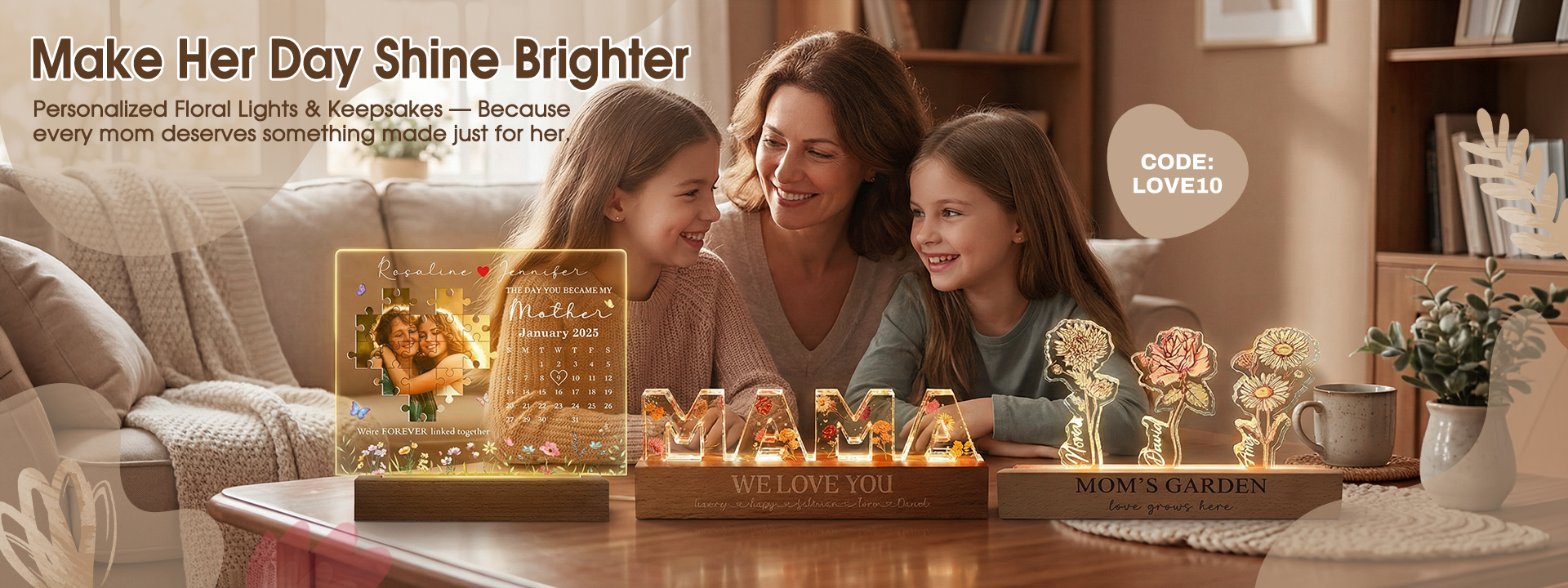 We Love You Mom Gift For Her - Persoanlized Photo LED Night Light