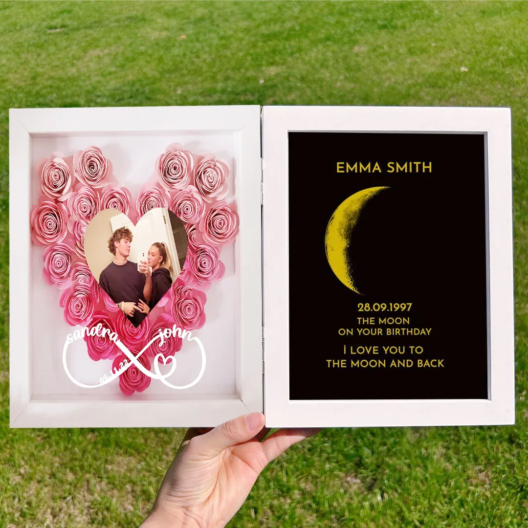 Celebrate eternity and love with this Infinity Sign With Names featuring a REAL Moon Phase and stunning floral accents. 🌺💫 This customizable piece lets you personalize it with the names of those closest to your heart, making it a perfect gift for couples, anniversaries, or any meaningful milestone. The inclusion of the moon phase from a special date adds a magical touch, bringing the celestial beauty into your home. 🌑🌟